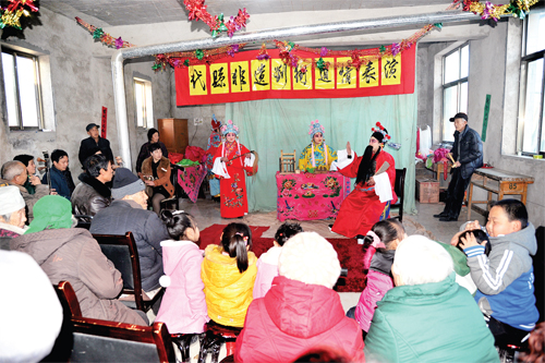 為了搶救劉街道情“非遺”劇種,弘揚和傳承雁門文化,新高鄉(xiāng)劉街村“ 兩委”班子多方籌措資金,購買服裝道具和文武場樂器,于近期成立了由30多人組成的劉街道情劇團(tuán),由老藝人傳授技藝。他們經(jīng)過3個多月的精心排練,已排練出《李大開店》、《夜宿花亭》、《雷橫磕枷》、《大上吊》、《劈棺》、《?;稹返?個劇目,將于元宵節(jié)期間亮相于縣城街頭,向全縣人民匯報演出。圖為熱心觀眾觀看劉街道情《李大開店》劇目的排練。(石俊文 劉睿 攝)