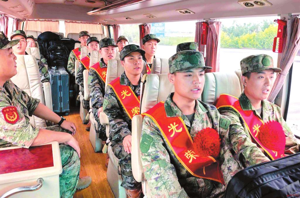 近日,定襄縣開展新兵入伍送兵活動(dòng)。中巴車內(nèi),身著迷彩服的新兵們佩戴“光榮”綬帶與大紅花,精神抖擻、目光堅(jiān)定。這輛承載著殷切期望的專車,將正式送他們踏上從軍報(bào)國的新征程。(郭婧蕾攝)