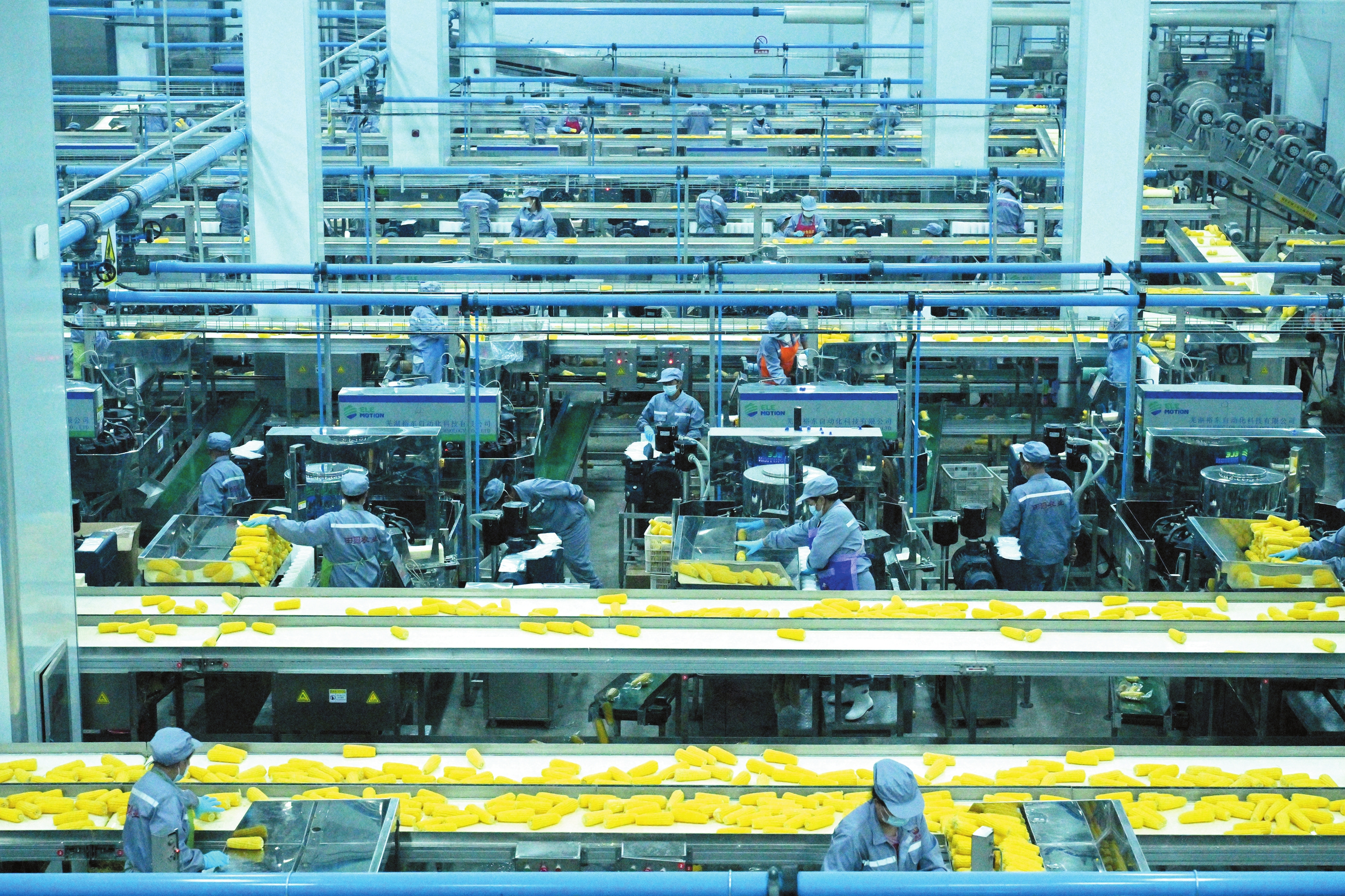 在五寨縣甜糯玉米加工園區(qū)內(nèi),一條條自動化生產(chǎn)線正全速運(yùn)轉(zhuǎn)。每一穗玉米都需經(jīng)過嚴(yán)格的人工檢驗(yàn),確保顆粒飽滿、形態(tài)完好。這套“自動化+人工精檢”的雙重品控體系,為“五寨甜糯玉米”品質(zhì)如一、暢銷全國提供了有力保障。(記者 馮曉磊攝)
