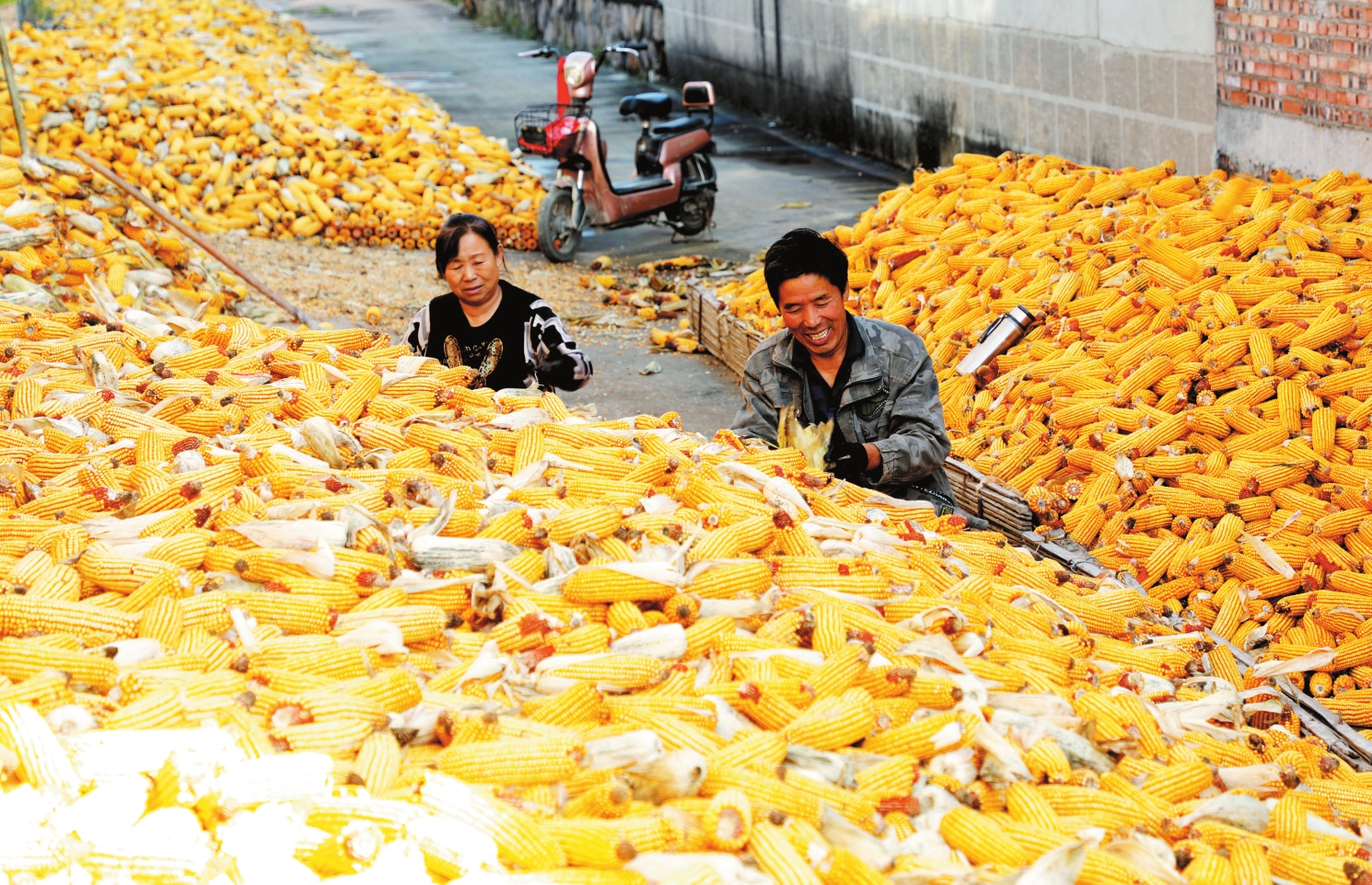 近日,原平市新原街道桃園村村民緊抓晴好天氣晾曬玉米,農(nóng)家場(chǎng)院呈現(xiàn)出一派喜人的豐收景象。(