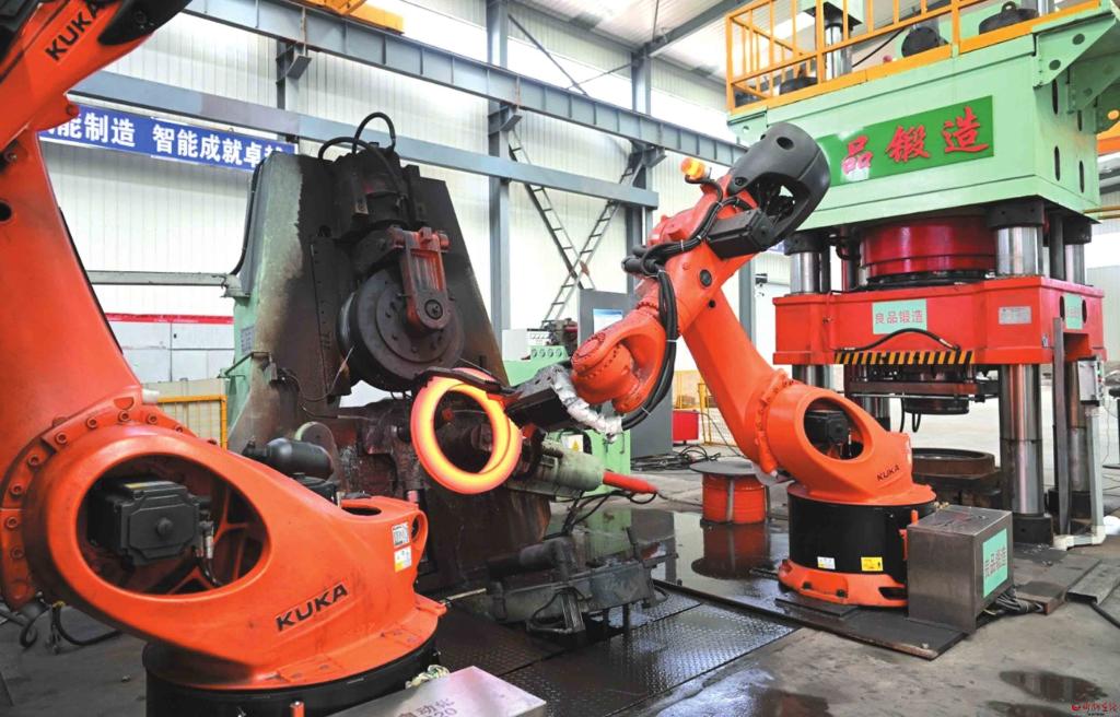 定襄縣秉持“綠色發(fā)展,科技創(chuàng)新”理念,大力推進(jìn)法蘭鍛造行業(yè)的裝備升級換代,變精密制造為智能制造。全縣二十多家企業(yè)實(shí)現(xiàn)生產(chǎn)智能化改造,生產(chǎn)效率提高了百分之五,成本降低了百分之六,經(jīng)濟(jì)效益大幅提高。圖為山西良品鍛造有限公司法蘭流水線機(jī)器人智能化生產(chǎn)作業(yè)。(張晉蘭攝