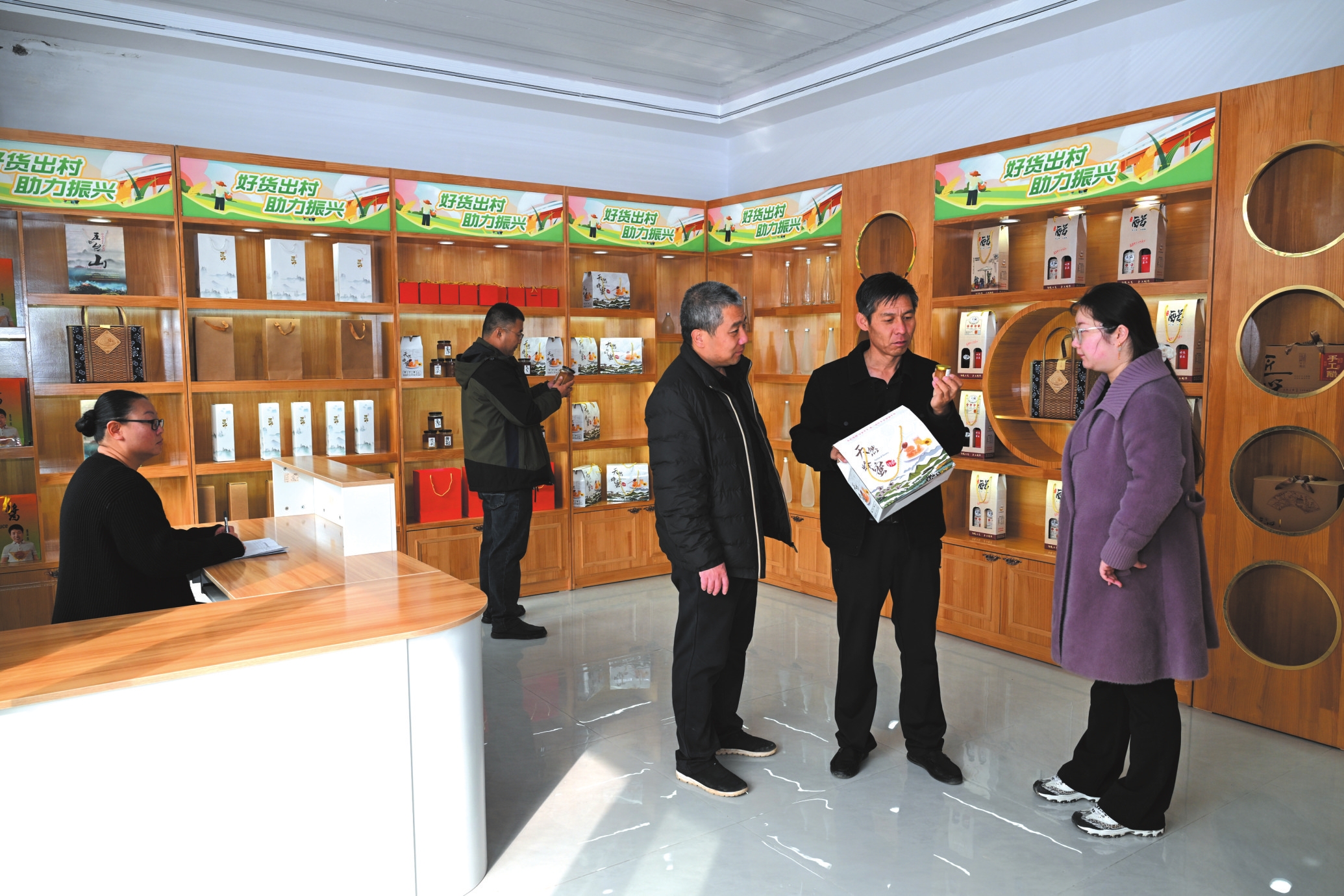 近日,五臺縣臺城鎮(zhèn)走馬嶺村農(nóng)產(chǎn)品展示館內(nèi)十分熱鬧,顧客精心挑選本地土特產(chǎn)品。該鎮(zhèn)黨委、政府依托縣城區(qū)位優(yōu)勢,集中全縣6大類56種優(yōu)質(zhì)農(nóng)產(chǎn)品入駐展館,線上線下同步推廣。截至目前,展館日均銷售額超6000元,開業(yè)5個(gè)月僅“陽白蜂蜜”就實(shí)現(xiàn)銷售7.4萬元。展館的設(shè)立不僅破解了農(nóng)產(chǎn)品銷路難題,更推動特優(yōu)農(nóng)產(chǎn)品向品牌化、市場化轉(zhuǎn)型,為鄉(xiāng)村振興注入新活力。(金俊賢攝)