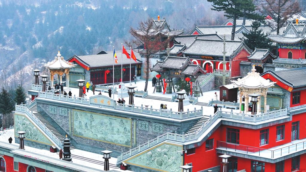 五臺(tái)山的雪,帶著空靈的寧?kù)o。紅墻黛瓦覆上皚皚白雪,似給千年古剎披上素凈袈裟。古松挺立,枝椏掛滿雪凇,晨鐘響起時(shí),雪沫從枝頭簌簌落下,與香火的青煙交織,恍若仙境。