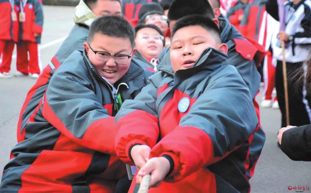 近日,忻州市北方初級中學(xué)舉行了冬季拔河比賽。比賽哨聲一響,賽場瞬間沸騰,參賽隊員們緊握長繩,雙腳蹬地,身體后傾;老師們化身為啦啦隊長,揮動雙臂,聲嘶力竭地為隊員們指揮節(jié)奏;各班同學(xué)則自發(fā)組成陣容強大后援團,將現(xiàn)場氛圍一次次推向高潮。(記者馮偉倫攝)