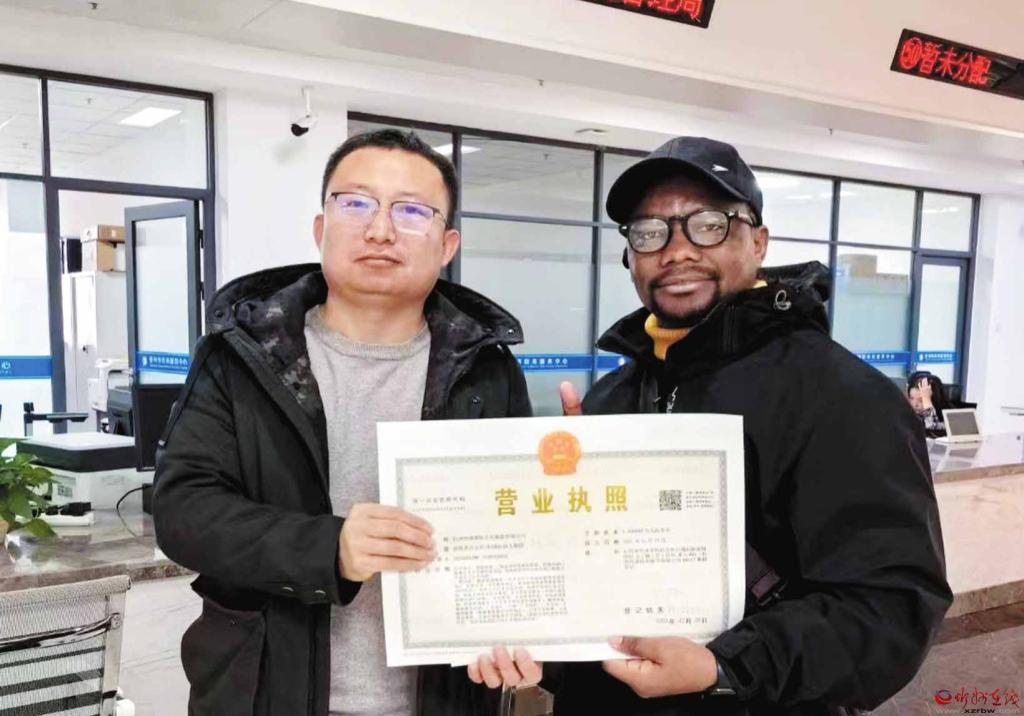 據(jù)了解,自獲悉Ininahazwe ilde-phonse來忻創(chuàng)業(yè)的意向后,市市場監(jiān)督管理局外資登記窗口便提供了全程幫辦服務。工作人員針對外國投資者可能遇到的語言、政策不熟悉等困難,主動進行“一對一”指導,協(xié)助其完成從材料準備到系統(tǒng)申報的全流程。圖為Ininahazwe ildephonse拿到營業(yè)執(zhí)照后,對工作人員的熱情服務豎起了大拇指。(本報通訊員攝)