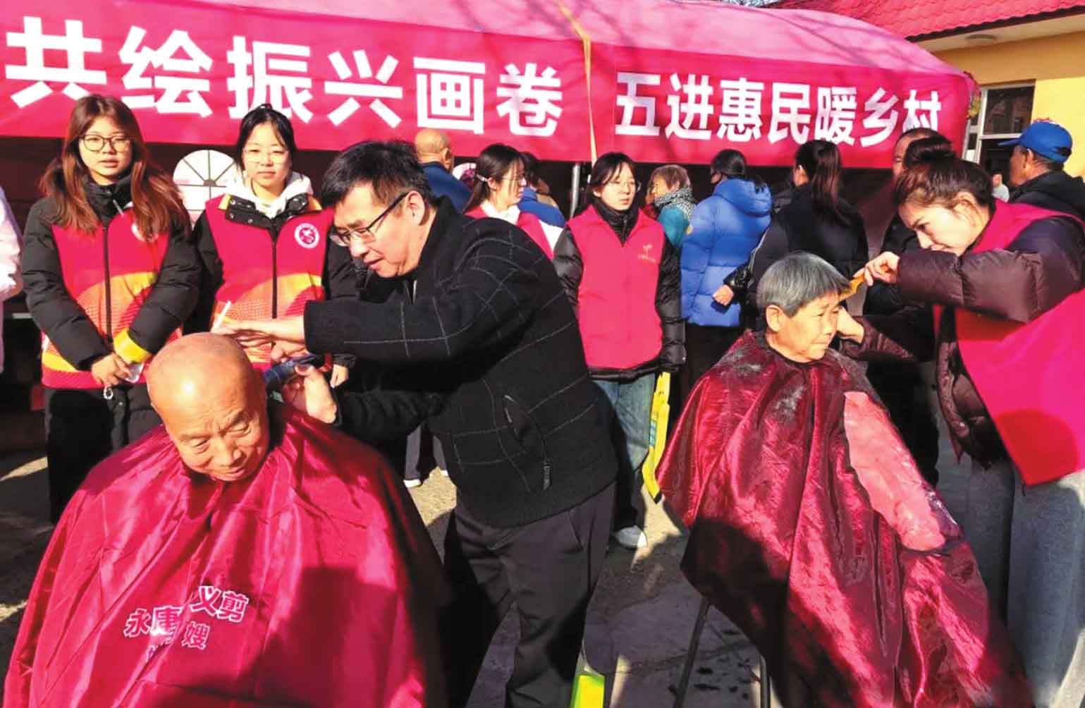 近日,原平市北城街道永康社區(qū)聯(lián)合沙晃村開展結(jié)對共建志愿服務(wù)活動(dòng),為村民提供免費(fèi)測量血壓血糖、口腔診療、愛心理發(fā)等便民服務(wù)。(本報(bào)通訊員 攝)