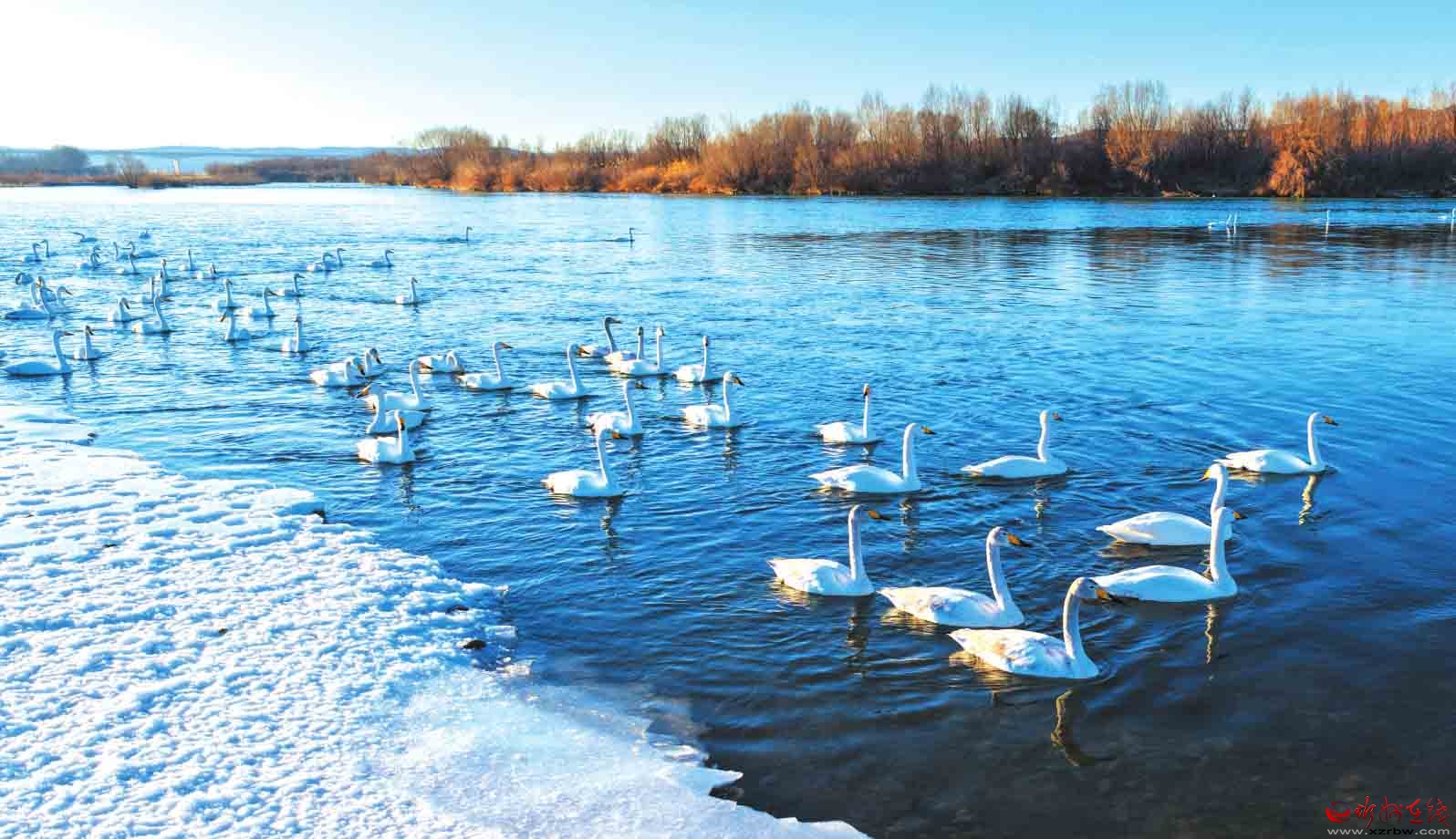 黃河河曲段迎來了大規(guī)模越冬白天鵝