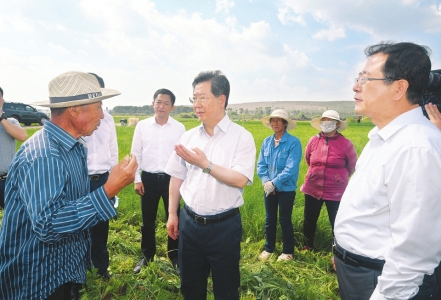 七月十三日,在右玉縣威遠(yuǎn)鎮(zhèn)小香蔥種植基地,省委書記樓陽生向農(nóng)戶了解產(chǎn)業(yè)帶動(dòng)增收情況。山西日?qǐng)?bào)記者李聯(lián)軍攝