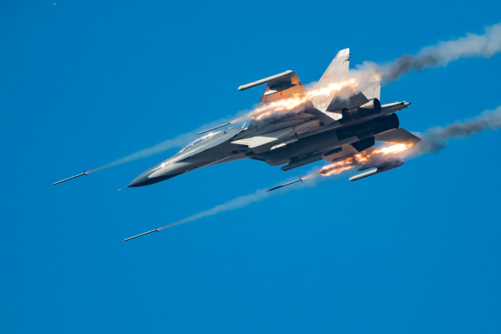 參加空軍“金飛鏢-2018”比賽的戰(zhàn)機(jī)進(jìn)行實彈攻擊(2018年4月24日攝)。新華社發(fā)(楊盼 攝)