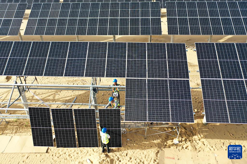 近年來,內(nèi)蒙古開展防沙治沙與風電光伏一體化工程,推進庫布其沙漠治理。目前,在鄂爾多斯市杭錦旗等庫布其沙漠北部地區(qū),一片片光伏基地在促進新能源產(chǎn)業(yè)發(fā)展的同時,成為當?shù)厣鷳B(tài)治理、經(jīng)濟發(fā)展的堅實屏障?!肮夥?生態(tài)治理”建設模式實現(xiàn)板上發(fā)電,板間、板下統(tǒng)籌兼顧特色生態(tài)修復、經(jīng)濟作物、造林綠化與技術創(chuàng)新,打造立體生態(tài)修復模式,讓沙海變成綠色電能涌動的“藍海”,實現(xiàn)生態(tài)效益與經(jīng)濟效益共贏。