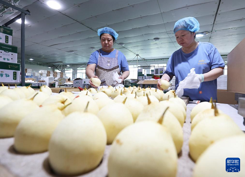 9月11日,河北省晉州市一家梨果出口企業(yè)的工人將梨果裝箱。(新華社記者 楊世堯 攝)