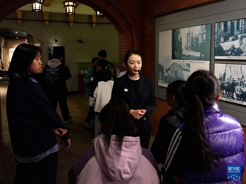 9月18日,在內(nèi)蒙古呼倫貝爾市,講解員為參觀世界反法西斯戰(zhàn)爭海拉爾紀念園的小學生講解。(新華社記者 馬金瑞 攝)