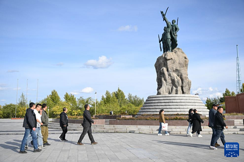 9月18日,人們在內(nèi)蒙古呼倫貝爾市海拉爾區(qū)世界反法西斯戰(zhàn)爭海拉爾紀念園參觀。(新華社記者 貝赫 攝)
