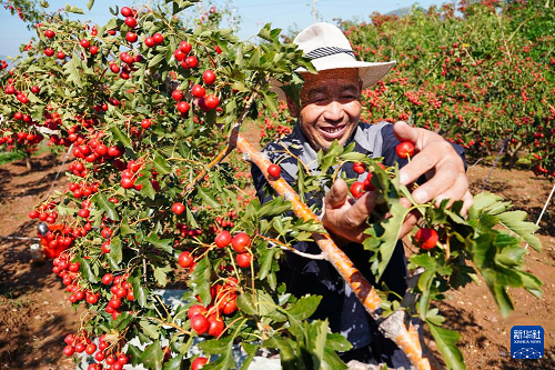 近日,山東省新泰市山楂陸續(xù)成熟,當(dāng)?shù)毓r(nóng)忙著進(jìn)行山楂收獲、運(yùn)輸、存儲(chǔ)等工作。近年來,新泰市因地制宜發(fā)展山楂產(chǎn)業(yè),當(dāng)?shù)厣介N植面積達(dá)4.7萬余畝,山楂產(chǎn)業(yè)已成為帶動(dòng)當(dāng)?shù)厝罕娫鍪罩赂坏奶厣a(chǎn)業(yè)。