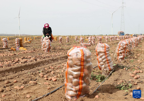 9月25日,河北省張家口市察北管理區(qū)一家馬鈴薯種植合作社的社員在田間收獲馬鈴薯。(新華社記者 楊世堯 攝)