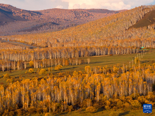 近日,位于內(nèi)蒙古呼倫貝爾市境內(nèi)的大興安嶺西坡地區(qū)秋意正濃。