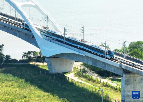 9月29日,列車通過(guò)福州濱??炀€烏龍江大橋(無(wú)人機(jī)照片)。(新華社記者 林善傳 攝)