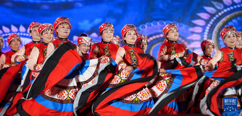 9月28日,農(nóng)民廣場(chǎng)舞表演隊(duì)在山東省鄒平市迎國慶群眾廣場(chǎng)舞大賽上表演。(新華社發(fā) 董乃德 攝)