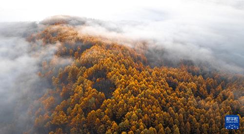 9月29日拍攝的內(nèi)蒙古阿爾山國(guó)家森林公園景色(無(wú)人機(jī)照片)。(新華社記者 貝赫 攝)