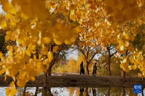 金秋十月,甘肅敦煌多地胡楊林被秋色渲染,吸引游客前來賞景打卡拍照。