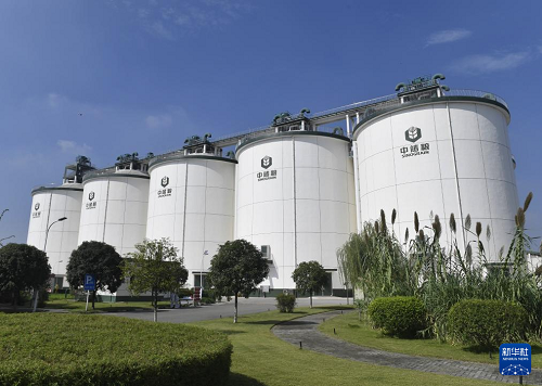 這是10月15日拍攝的中儲(chǔ)糧成都青白江倉(cāng)儲(chǔ)有限責(zé)任公司內(nèi)景。(新華社記者 劉坤 攝)