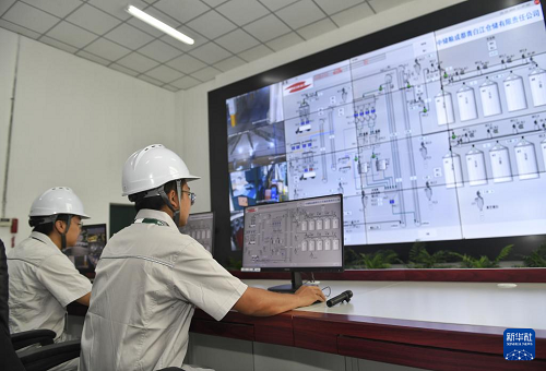10月15日,在中儲(chǔ)糧成都青白江倉(cāng)儲(chǔ)有限責(zé)任公司,技術(shù)人員在淺圓倉(cāng)工作塔控制中心(中控室)操作糧倉(cāng)入庫設(shè)備、通風(fēng)設(shè)備和視頻監(jiān)控系統(tǒng)。(新華社記者 劉坤 攝)