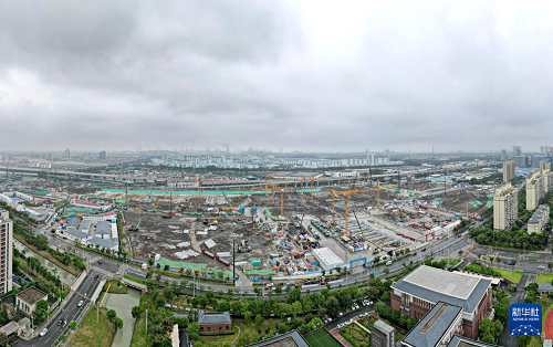 這是10月16日拍攝的建設中的上海寶山站(無人機照片)。(新華社記者 方喆 攝)