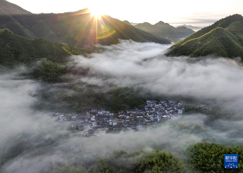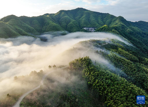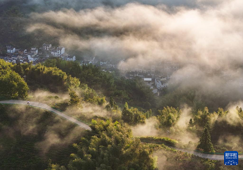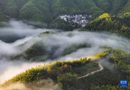 10月16日,秋雨初歇的安徽省黃山市黟縣宏村鎮(zhèn)木坑竹海景區(qū)云海涌動,縈繞于漫山竹林之中,鱗次櫛比的徽派民居與流動的云霧交織,宛若詩意仙境。