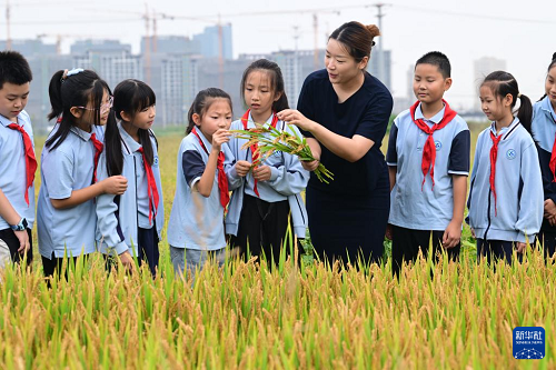10月15日,江蘇省太倉市港城小學(xué)老師為孩子們講解水稻生長知識。(新華社發(fā) 計(jì)海新 攝) 10月16日是第45個(gè)世界糧食日,多地學(xué)校開展愛糧惜糧教育活動。今年世界糧食日的主題為“手拉手共倡多樣美食,聚合力同創(chuàng)美好未來”。 (責(zé)任編輯:蔡文斌) |