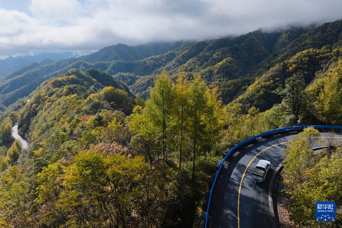 10月30日拍攝的鎮(zhèn)坪縣境內(nèi)化龍山秋日景色(無人機照片)。(新華社記者 邵瑞 攝)
