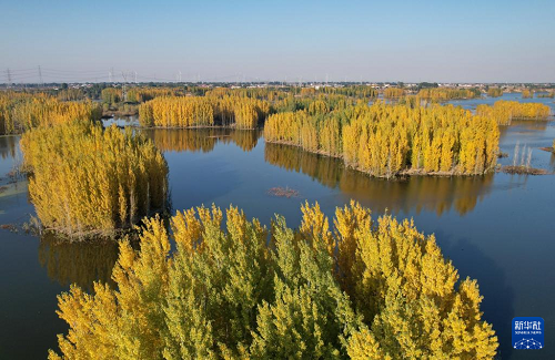 初冬時節(jié),在河北省邢臺市隆堯縣亦城村泜河沿岸,樹葉金黃,與水面、河岸相映襯,勾勒出一幅美麗和諧的自然畫卷。