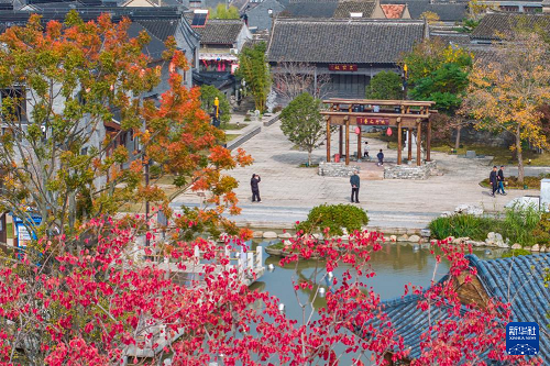 11月9日,游客在江蘇省淮安市淮安區(qū)河下古鎮(zhèn)游玩(無(wú)人機(jī)照片)(新華社發(fā) 張建 攝)