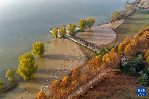 11月16日,天鵝棲息在山西省運(yùn)城市平陸縣黃河濕地三灣段。(新華社發(fā) 權(quán)永軍 攝)