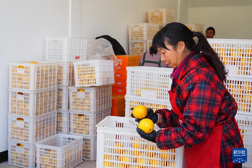 12月11日,在浙江省慶元縣竹口鎮(zhèn)黃壇水干果園區(qū),一名工人在分揀甜桔柚。(新華社記者 劉梓漪 攝)