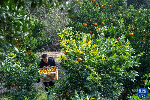 12月11日,在湖北省宜昌市長(zhǎng)陽(yáng)土家族自治縣漁峽口鎮(zhèn)巖松坪村,村民在搬運(yùn)剛采摘的清江椪柑。(新華社記者 杜子璇 攝)
