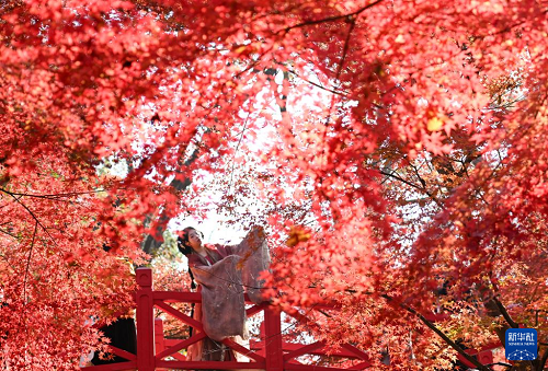 12月7日,游人在南京中山植物園觀賞楓葉。(新華社發(fā) 楊素平 攝)