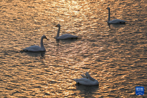 12月21日,白天鵝在河南省三門峽市天鵝湖國家城市濕地公園內(nèi)棲息。(新華社發(fā) 何五昌 攝)
