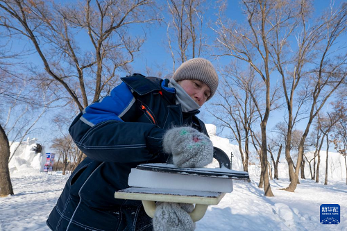 1月7日,在哈爾濱太陽島雪博會園區(qū),來自13個國家的25支代表隊百余位藝術(shù)家在寒冬中堅持藝術(shù)創(chuàng)作,精雕細(xì)琢雪雕作品。