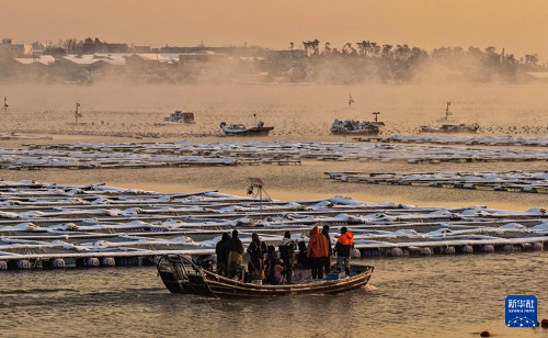 1月12日,雪后的山東省榮成市愛倫灣海洋牧場出現(xiàn)“海浩”景觀。據(jù)悉,“海浩”景觀是一種在嚴寒天氣下出現(xiàn)的自然奇觀,表現(xiàn)為海面或湖面上水汽蒸發(fā)后遇冷凝結,形成白茫茫的霧氣,如同水面沸騰一般。