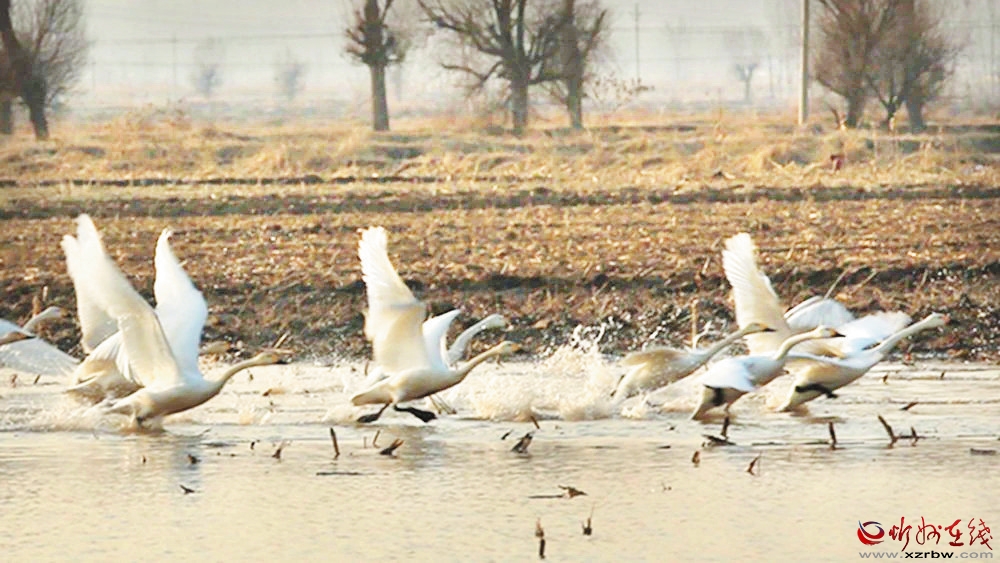 據(jù)了解,天鵝主要棲息于海岸、湖泊等水域,成對(duì)或結(jié)群活動(dòng),以各種水生植物和藻類為食,而且,天鵝對(duì)棲息地生態(tài)環(huán)境要求極高,一般選擇無(wú)污染、食物充足的濕地作為棲息地。近年來(lái),我市持續(xù)加大生態(tài)建設(shè)力度,不斷改善生態(tài)環(huán)境,滹沱河、雙乳湖等地,都已經(jīng)成為多種鳥(niǎo)類遷徙的中轉(zhuǎn)站和棲息地。(郭耀華 攝)