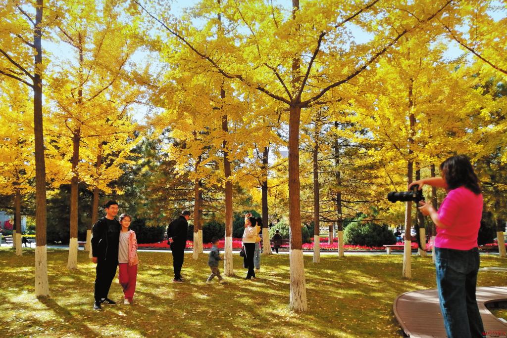 葉落知秋,霜落知寒,但屬于銀杏的時(shí)節(jié)才剛剛開(kāi)始。忻州城區(qū)人民公園絢爛金黃的銀杏把秋日氣息渲染到了極致,使原本蕭瑟的秋季充滿(mǎn)融融暖意。滿(mǎn)樹(shù)的金黃,一片片、一簇簇,層疊排開(kāi)、錯(cuò)落有致,一陣微風(fēng)吹過(guò),扇形葉子飄灑而下,如漫天飛舞的金色蝴蝶,在空中翻轉(zhuǎn),落成一地金黃,吸引無(wú)數(shù)游人打卡拍照、流連忘返。(本報(bào)記者 李濤 攝)