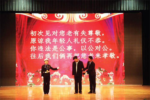 1月27日至29日,偏關(guān)縣公安局交警大隊交通安全文藝宣傳隊在隊長們的帶領(lǐng)下,先后走進市實驗中學(xué)、市客運中心、國家電網(wǎng)忻州供電分公司進行了三場演出,用自編自導(dǎo)自演、群眾喜聞樂見的“漫翰調(diào)”、“二人臺”、北路梆子、民歌等一系列極具地域文化特色的地方小戲、說唱歌舞等曲藝形式進行宣傳演出,贏得滿堂喝彩,場場掌聲雷動。作為春節(jié)回家路上的一道文化盛宴,這次春節(jié)前的平安出行警示教育“送安全下鄉(xiāng)”巡演是我市公安交警精心策劃、編排的春運交通安全宣傳行動之一。28日,市客運中心人頭攢動,熙熙攘攘,大廳外懸掛的橫幅標(biāo)語“守護您的平安出行,保障道路安全暢通是每一位交警的神圣職責(zé)!”格外醒目。候車大廳里,暖意融融,市公安局交警支隊組織的春運交通安全文藝演出正在進行,交警版的民間小調(diào)《拜大年》、小品《警鐘聲聲》、雙簧《二愣子》等節(jié)目令人賞心悅目、捧腹不止。在歡笑之余,提醒和教育廣大群眾自覺抵制不文明、不安全交通行為,觀看演出的旅客和客車司機紛紛感慨,這樣的宣傳教育生動形象,人人愛看且耐人尋味,警示作用很大。