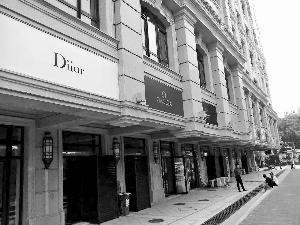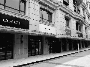 昨日,北京晨報記者來到位于建國門橋附近的中海楓丹公館,看到整個樓盤有五棟樓,呈凹字形。建筑物四周設有30多個大小不一的底商,每個底商頂部都掛著一個看似國際大牌的招牌,既有奢侈品,也有快餐業(yè),顏色鮮艷,十分奪目。就在這些大牌的招牌旁邊,張貼著大幅廣告“黃金旺鋪火爆招商中”。
