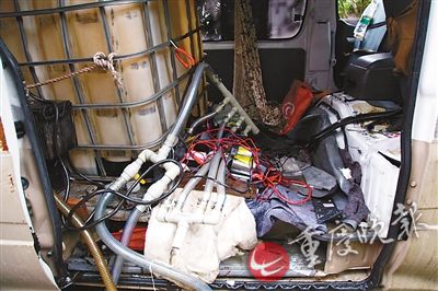 經(jīng)審訊,嫌疑人陳某曾因盜竊柴油被判入獄,在獄中認(rèn)識(shí)張某、張某某。3人出獄后,在瀘州買了一輛二手福田面包車,經(jīng)過精心改裝并換上假牌照,往返于川渝兩地,在G93渝瀘高速各服務(wù)區(qū)專門盜竊貨車油箱里的柴油。偷油設(shè)備自動(dòng)化,改裝車內(nèi)裝著好幾個(gè)大油桶,用一根塑料管,通過一個(gè)油泵,把貨車油箱里的油直接抽到桶里。油泵電源由蓄電池提供,為避免發(fā)動(dòng)機(jī)聲音過大,油泵還用舊衣服層層包裹。馬力大的油泵,1分鐘就能把貨車滿滿一箱油抽光。為了更快抽油,嫌疑人甚至并聯(lián)4個(gè)大油泵。與以往拿著吸油管的小賊比,這樣的裝備偷油速度快10倍,比加油速度快幾倍。6月以來,該團(tuán)伙僅在江津范圍內(nèi)就瘋狂作案20余起,盜得柴油5000余升,涉案金額數(shù)萬元。陳某落網(wǎng)當(dāng)天,警方在面包車上查獲的1000余升柴油是陳某獨(dú)自在珞璜服務(wù)區(qū)連續(xù)作案5起盜得。