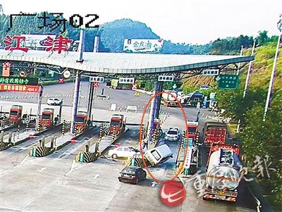 8月25日凌晨,民警接到線索,嫌疑車輛再次出現(xiàn)。民警馬上在渝瀘高速江津沿線進(jìn)行蹲守。早上7時(shí)42分許,嫌疑車輛緩緩駛?cè)胗鍨o高速G93江津收費(fèi)站,埋伏在收費(fèi)亭內(nèi)的民警,試圖在嫌疑人停車?yán)U費(fèi)時(shí)將其控制。不料對(duì)方見勢(shì)不妙,啟動(dòng)車輛準(zhǔn)備沖卡逃跑。這時(shí),另一隊(duì)蹲守在收費(fèi)站外的民警立即將警車開到前方,把嫌疑車輛堵在收費(fèi)車道內(nèi)。嫌疑人駕車對(duì)警車進(jìn)行多次強(qiáng)烈撞擊,企圖撞開警車后逃竄,但均未得逞。隨后,嫌疑人又猛烈倒車,企圖撞開后方社會(huì)車輛。