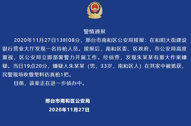 11月27日,河北邢臺(tái)市某銀行發(fā)生“持槍”搶劫。