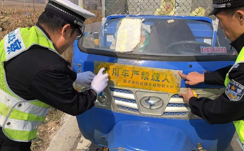 “三輪車結(jié)構(gòu)簡(jiǎn)單,穩(wěn)定性差,機(jī)械強(qiáng)度低,如果駕駛不慎,極易引發(fā)翻車事故,使駕乘人員遭受非常嚴(yán)重的傷害。請(qǐng)三輪車駕駛?cè)俗杂X遵守交通法規(guī),嚴(yán)禁違法載人”。