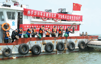 山東省東營市近日在黃河三角洲國家級自然保護區(qū)外圍毗鄰海域開展涉環(huán)境公益訴訟增殖放流活動,2300萬余粒貝類幼苗被放流入渤海。周廣學攝(人民視覺)