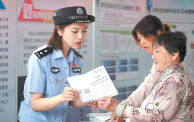 江蘇省揚州市,民警為市民講解國家網(wǎng)絡(luò)安全知識。 孟德龍攝(影像中國)