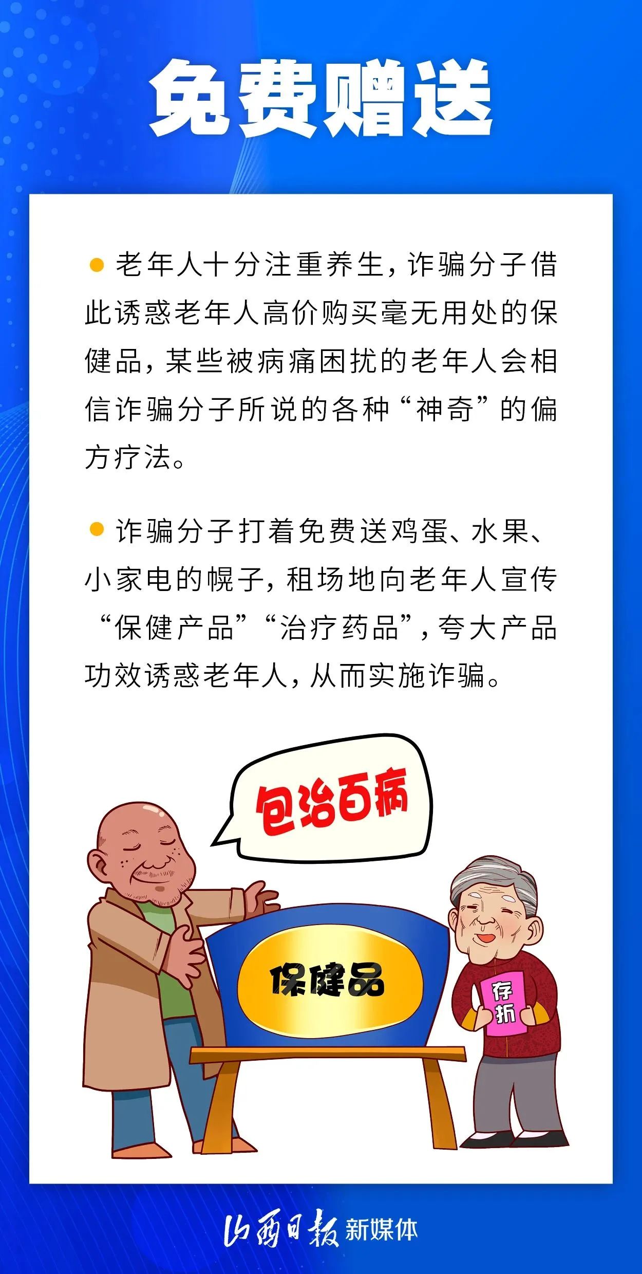 近年來,詐騙套路層出不窮。一些不法分子利用老年人信息閉塞、渴望健康、認(rèn)知較弱的特點(diǎn),騙取老年人錢財(cái)。常見的詐騙套路有哪些?我省民警重點(diǎn)介紹了九類涉老詐騙。